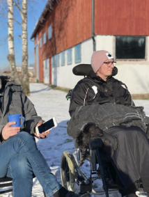 Distansundervisningen i skolan påverkades också, ofta gick jag från att sitta på lektionen och lyssna den ena minuten till att hjälpa mamma med sonden den andra. Sjukdomen begränsade mig en del ibland och gjorde det svårt att träffa kompisar när jag behövde vara hemma och laga mat till mig och mamma. Under tiden hon åt behövde jag sitta med och vänta på att pappa kom hem så hon slapp vara ensam hemma under längre stunder. Jag kunde också uppleva att det var jobbigt att åka till mataffären och handla med mamma när hon satt i rullstolen då många kunde titta på oss.